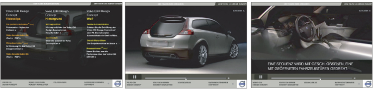 Das diese Darstellungsform auch in Zukunft auf der Website von Volvo verstärkt eingesetzt wird zeigt die Präsentation zum C30 Concept Car.